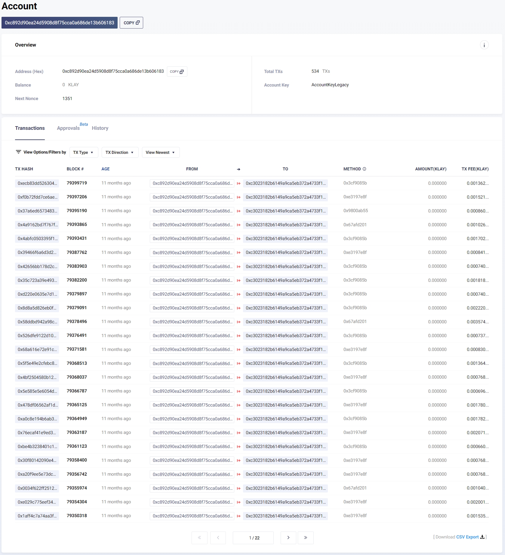 Shows the current "Account Key Type." You can check the unique address system of Klaytn, such as Multisig, RoleBased, etc.