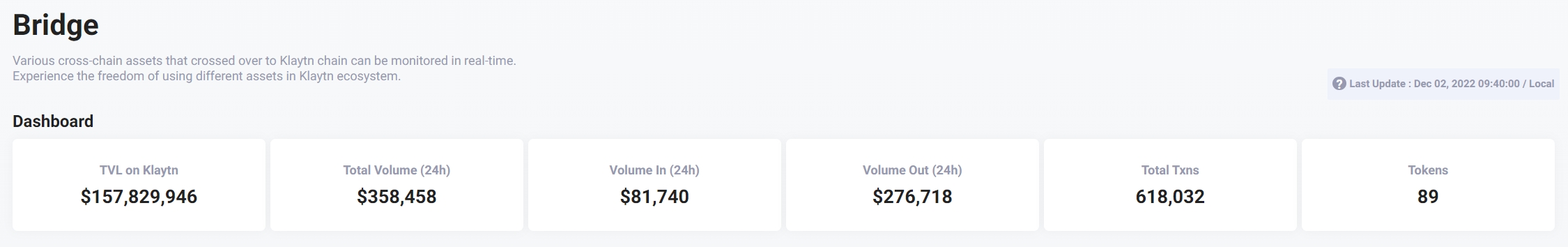 Total bridge assets related to the Klaytn chain.
