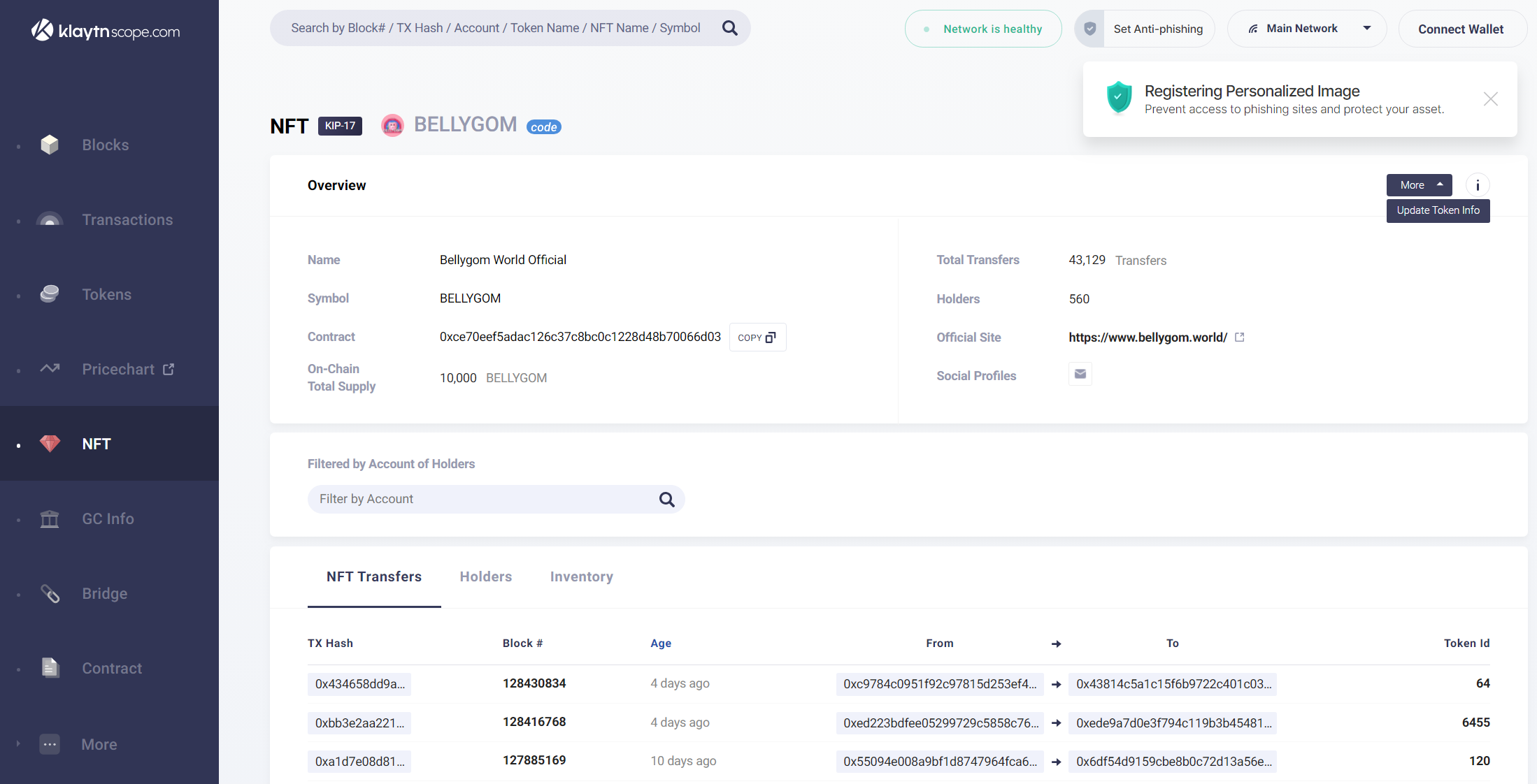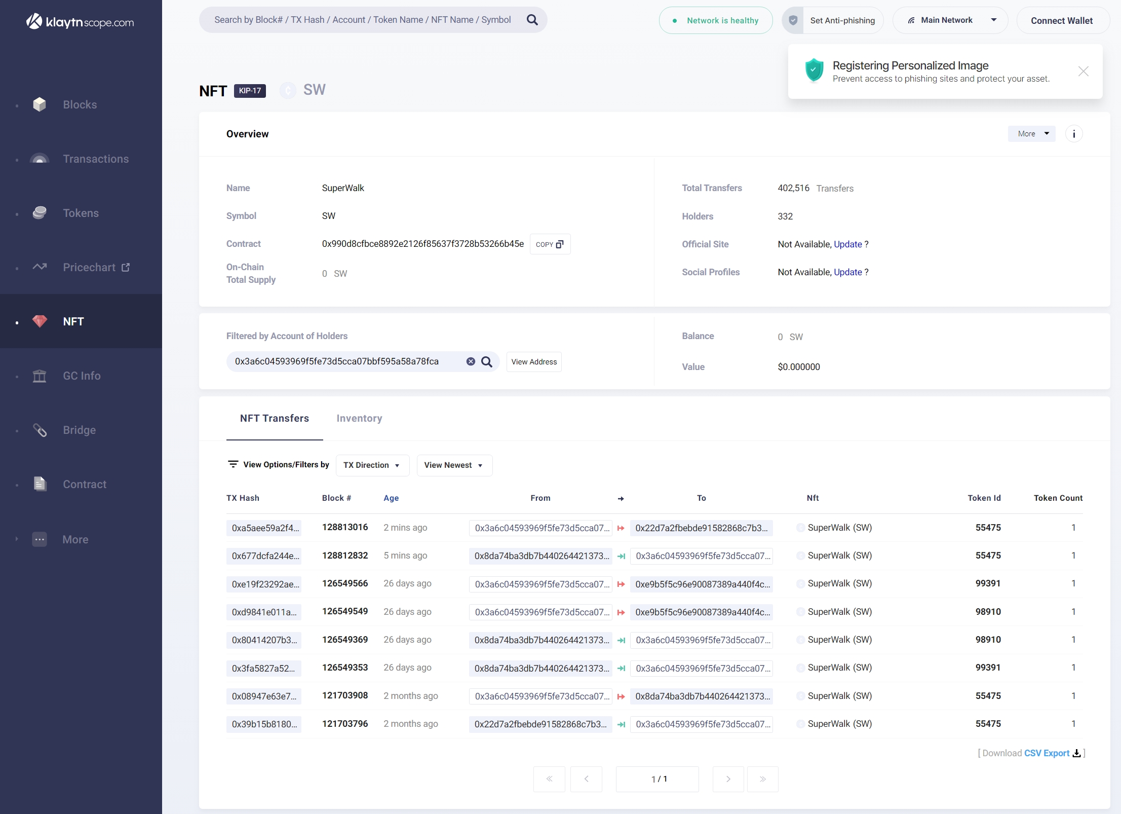 If the code for the NFT is registered, the NFT deployer can apply for NFT information registration by clicking the ‘More’ button in the upper right corner of the page.